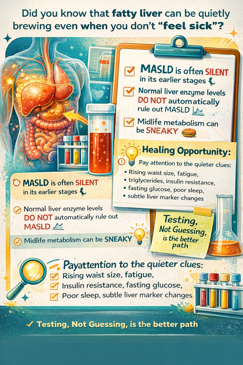 Fatty liver can be sneaky. Many women do not realize it is part of their picture until routine labs, imaging, or a broader workup raises the question.