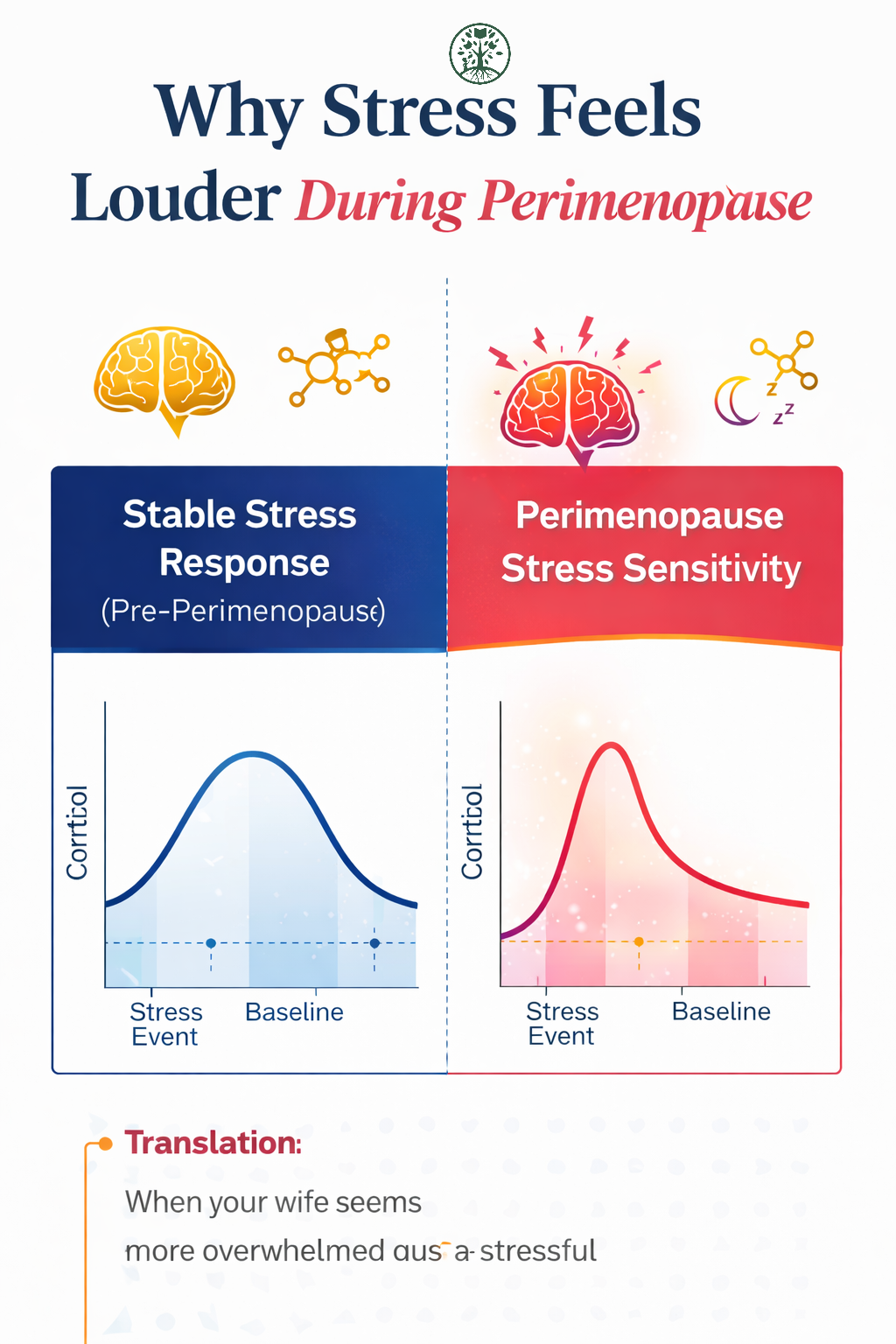 This is one reason small misunderstandings or tense conversations can suddenly feel much more intense during perimenopause. The brain is processing signals through a more reactive stress pathway, which can amplify emotional sensitivity, anxiety, sleep disruption, and irritability.